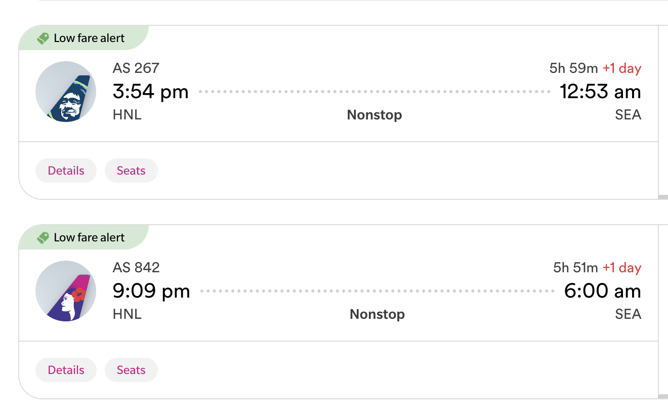 - OGG → SEA (Alaska)